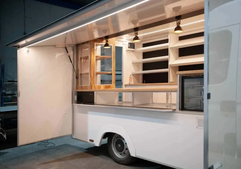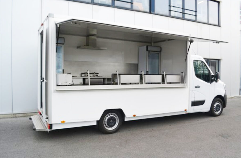 Véhicules professionnels aménagés et entièrement équipés. Cuisine complète intégrée, design personnalisé selon votre identité visuelle.